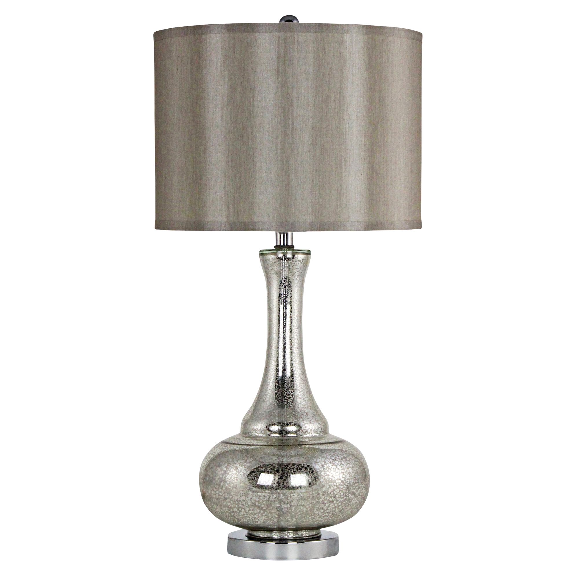 Table Lamp 13√wx13√dx23œ√h $99.95 translucent silver cord. Elongated open base and finial are Square glass lamp base has an antiqued mercury finish. Ball-shaped finial is glass. Tapered shade is olive polyester with an olive-grey lining. ... Return Doc